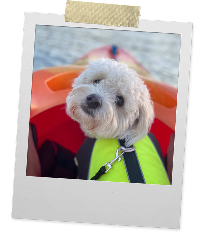 in the countryside - hiking, kayaking or teaching my dog, Benji, new tricks.